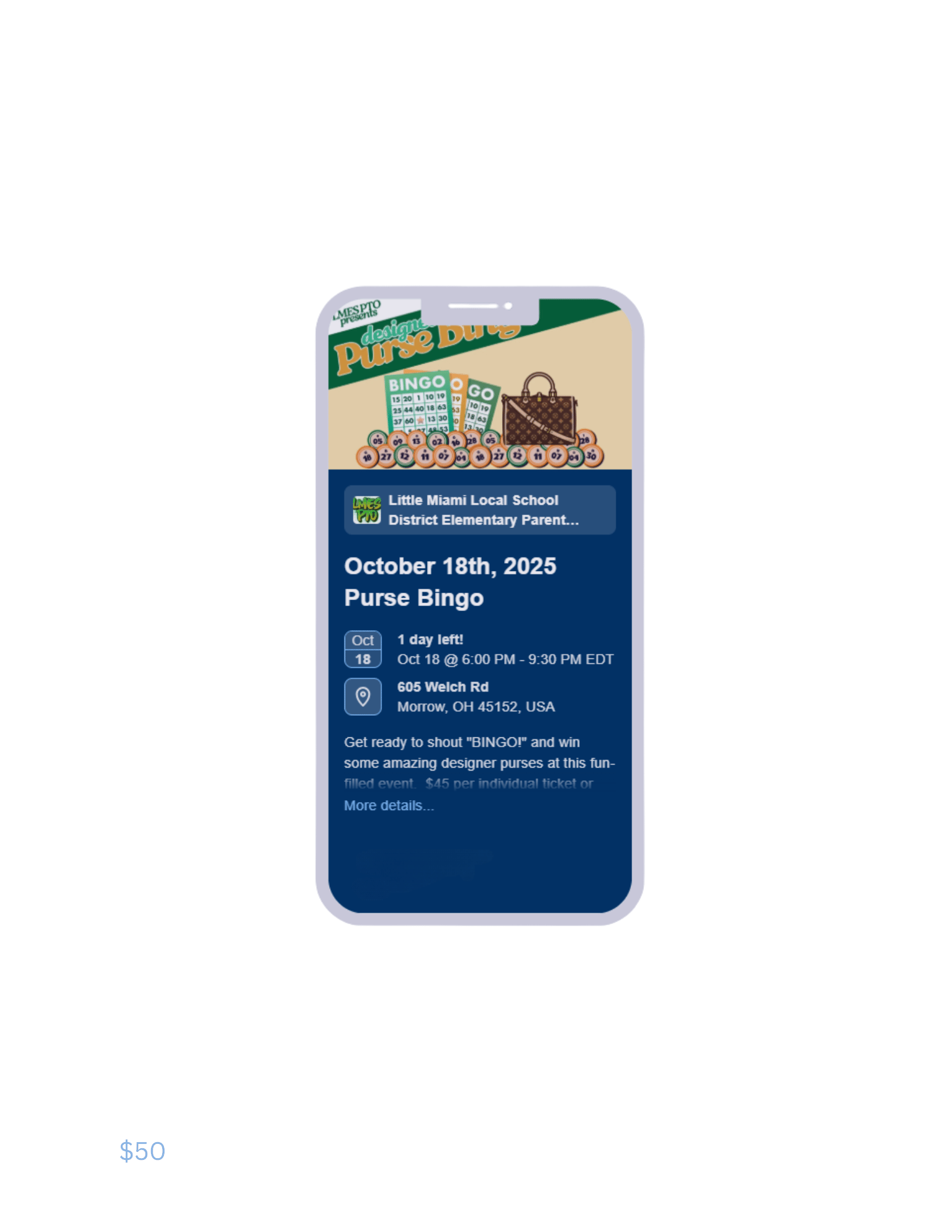 Get ready to shout "BINGO!" and win some amazing designer purses at this fun-filled event. $50 per individual ticket at the door. The cost includes 20 BINGO games - that's 20 chances to win a designer purse!